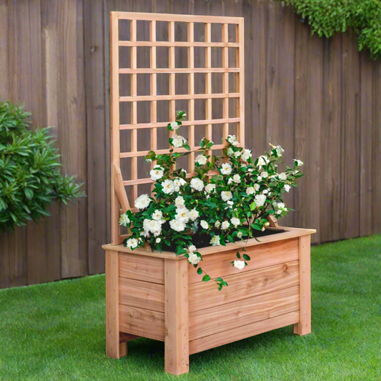 Premium Cedar Raised Planter Box - with Back Trellis Grid