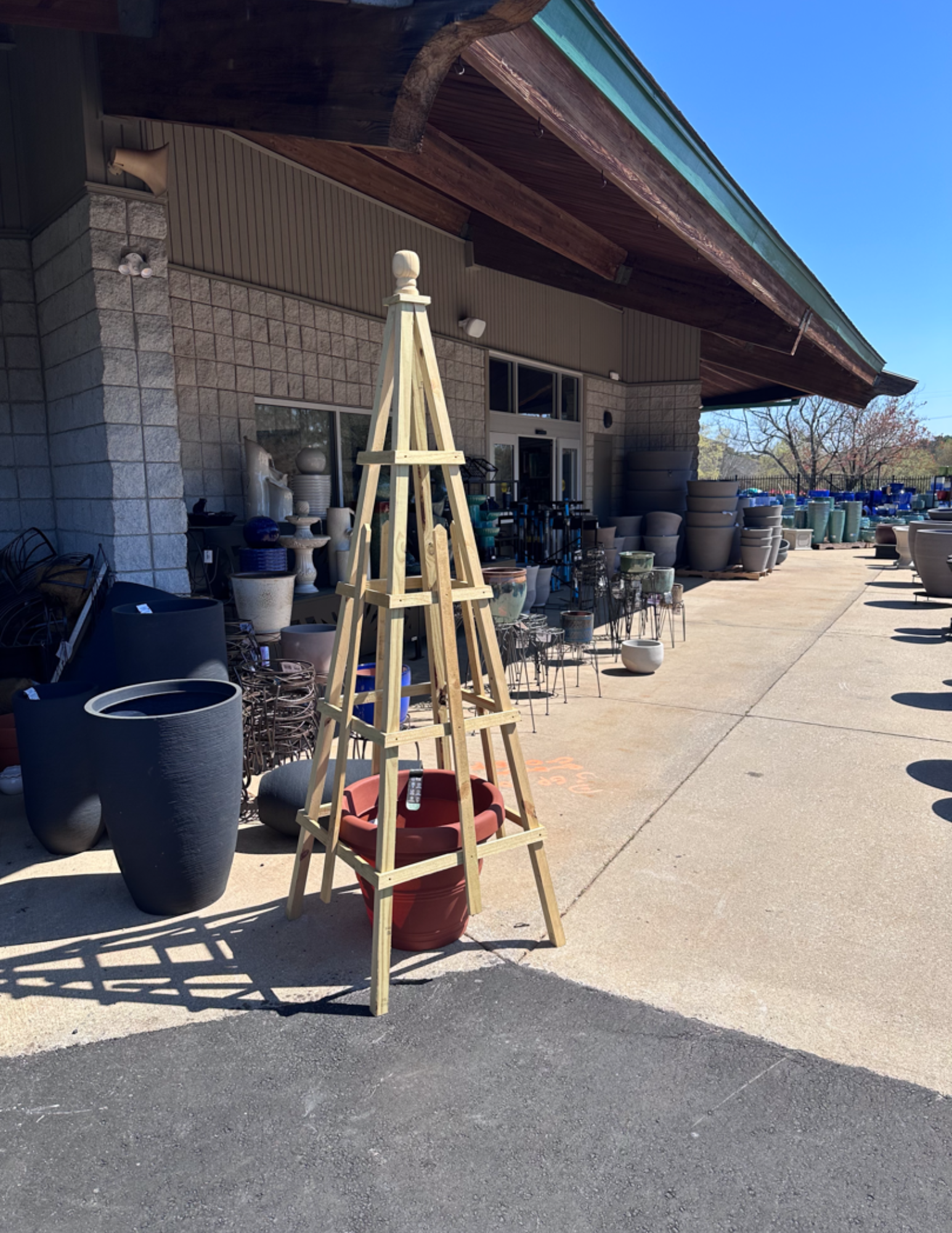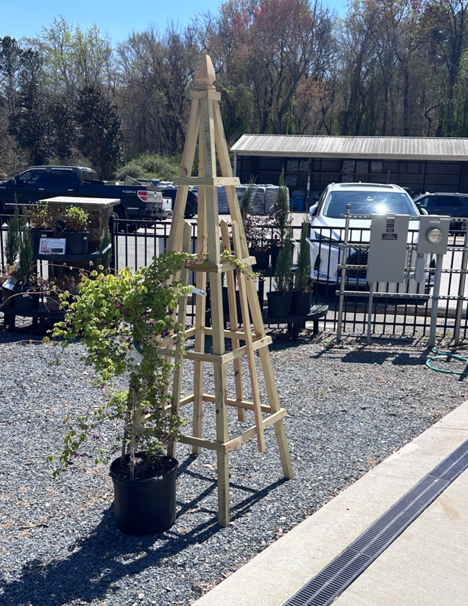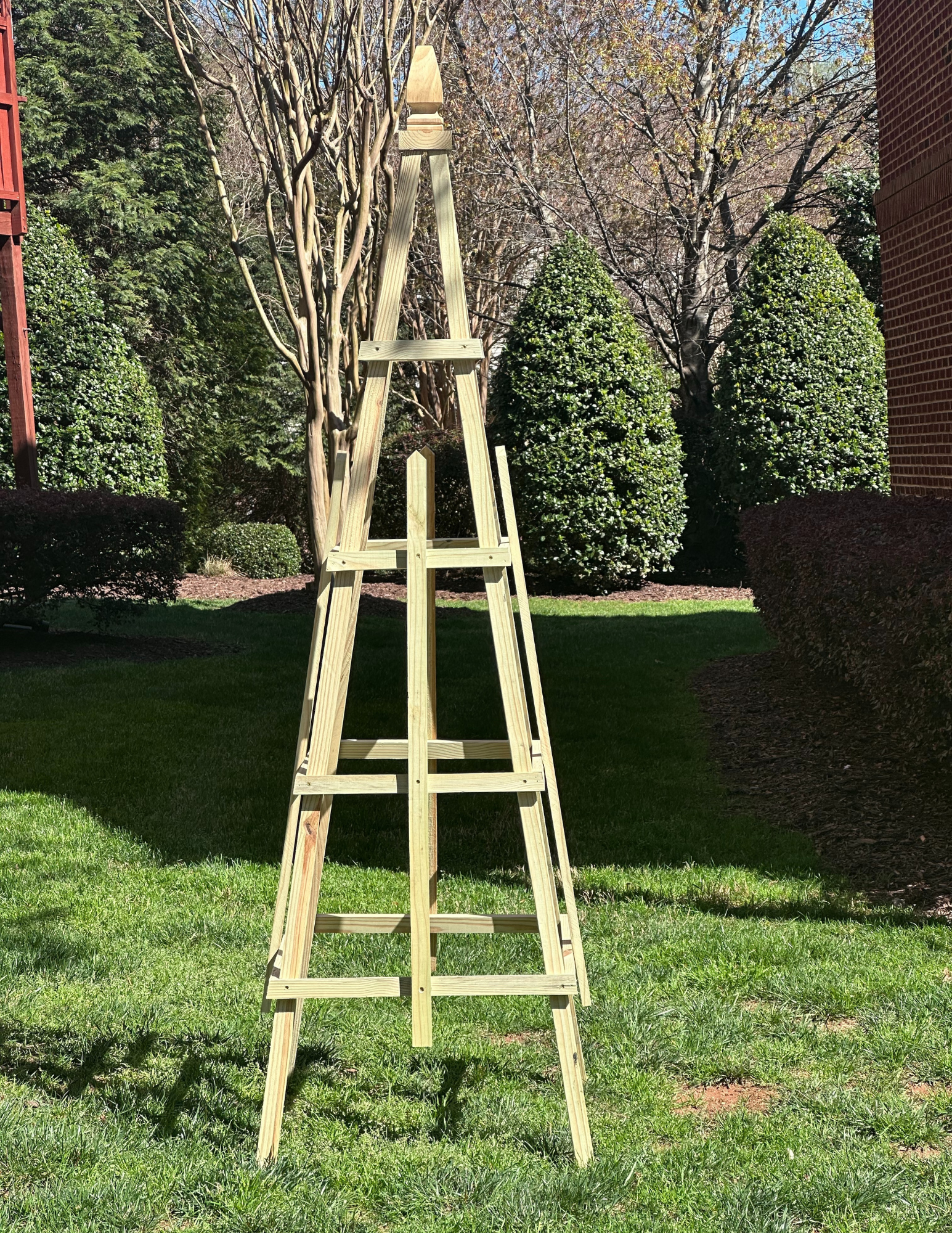 Elevate your garden space with our Obelisk Garden Trellis. Crafted from durable wood with impeccable craftsmanship, at over 6-feet, this trellis adds a touch of elegance to any outdoor space. Ideal for climbing plants and vines, this trellis is a must-have for any garden enthusiast. All pieces are secured with screws and wood-glue for durability. *** ONLY AVAILABLE FOR RETAIL PURCHASE BY LOCAL PICK UP OR DELIVERY OR AT ATLANTIC GARDENING, 5217 ATLANTIC AVE, RALEIGH, NC and LOGAN'S ONE STOP GARDEN SHOP AT THE NORTH CAROLINA STATE FARMERS MARKET IN RALEIGH AT THIS TIME - Raleigh, NC US Market Only.
